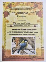 Воспитанница группы "Лимончики" заняла 3 место в городском конкурсе "Синичкин день"